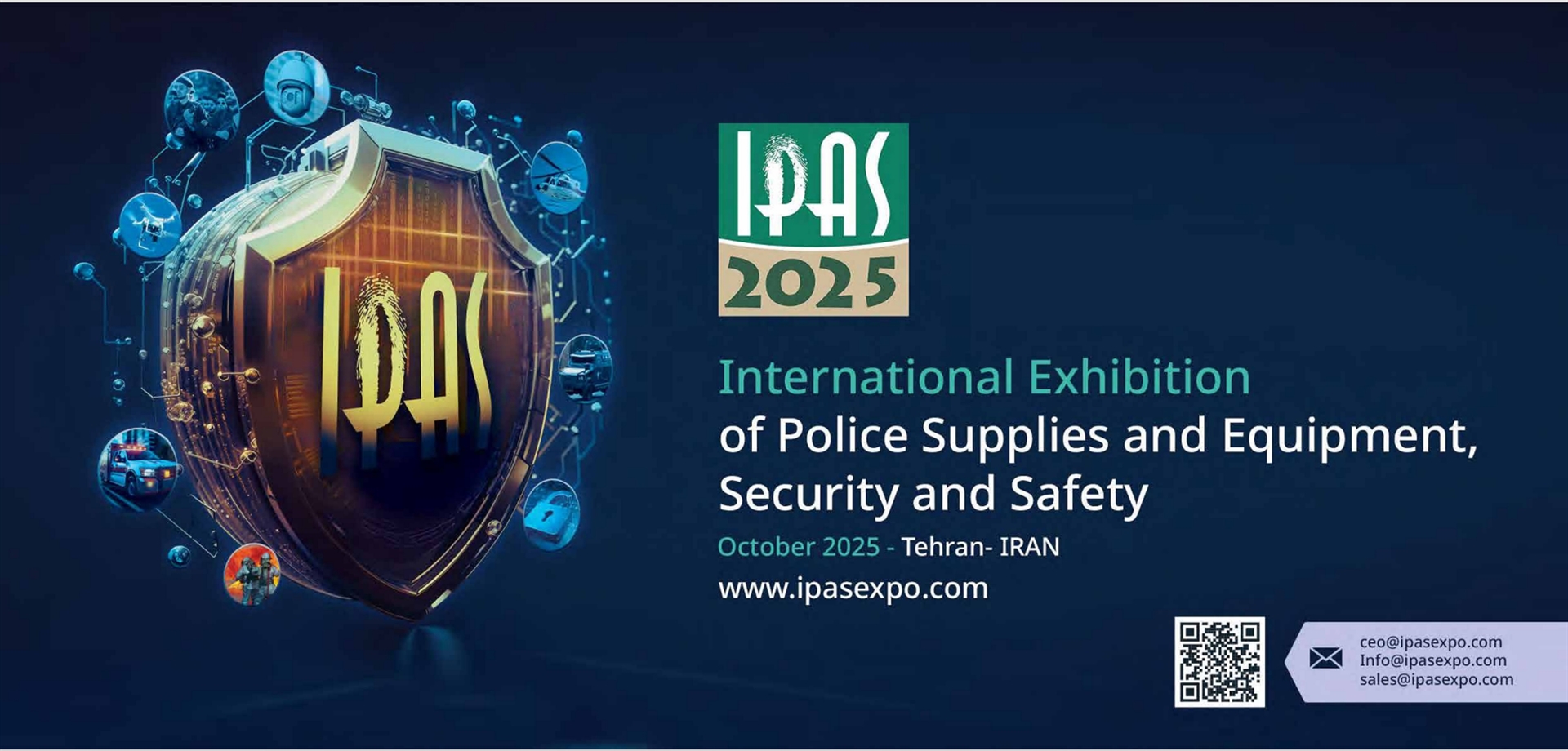 بیست و دومین نمایشگاه بین المللی لوازم و تجهیزات پلیسی، امنیتی و ایمنی- ایپاس(IPAS-2025) از تاریخ 21 تا 24 مهرماه سالجاری برابر با 13 لغایت 16 اکتبر 2025 در محل مصلی بزرگ امام خمینی(ره) برگزار میگردد.
